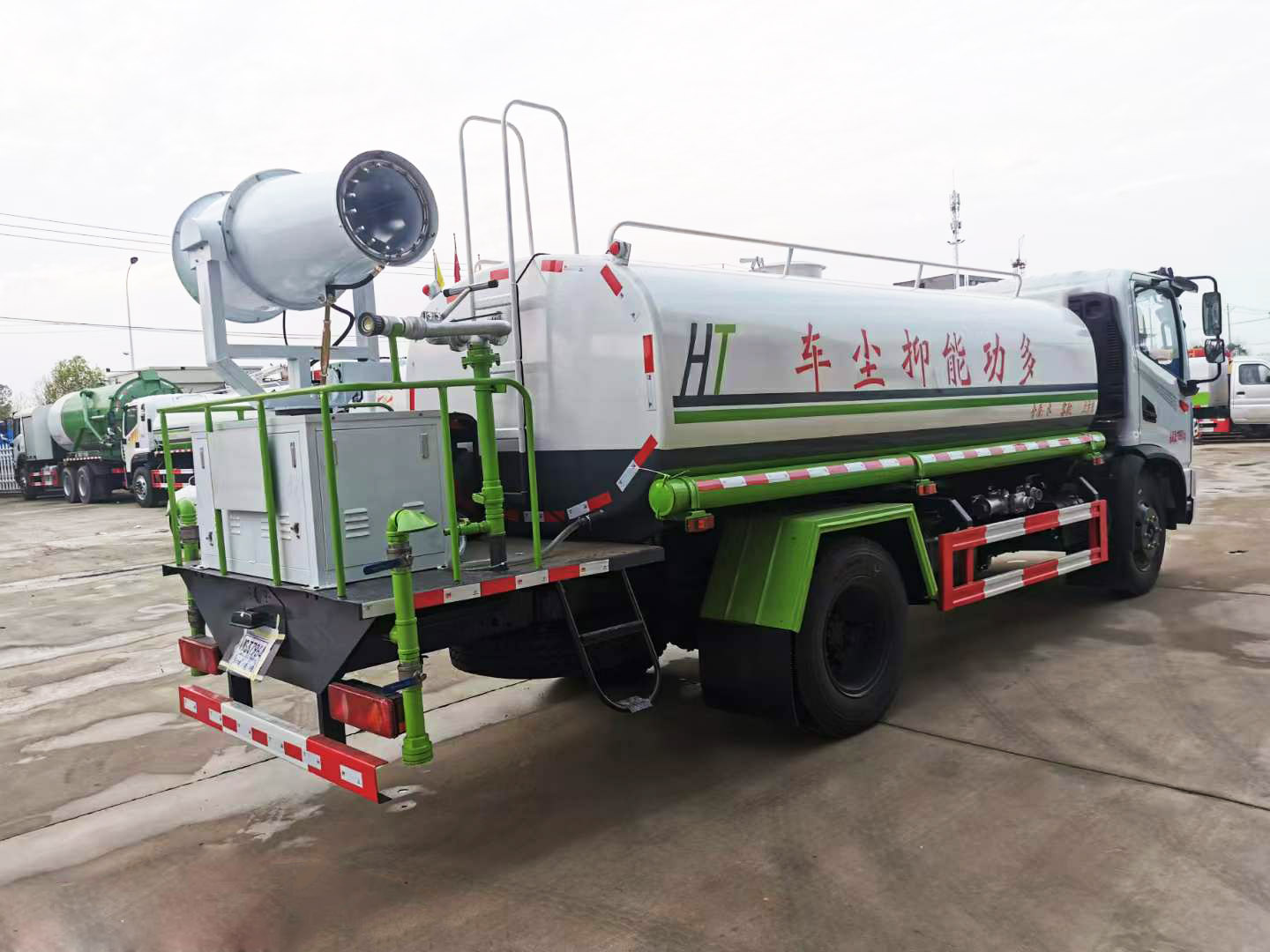 標配 前沖、后灑、側噴、后平臺高炮、自流閥、消防接頭、濾網、噴頭、帶自吸自排。