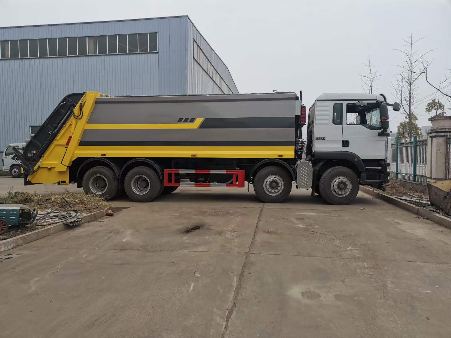 底盤配置: 配置一:濰柴350馬力,G5-M系列駕駛室,軸距:1800+3800+1350,豪沃10檔變速箱,5.5噸前橋,11噸雙后橋,280大梁,11.00R20鋼絲胎,400L油箱。自動(dòng)空調(diào),四通道ABS,博世方向機(jī),氣囊座椅,電動(dòng)玻璃,中控鎖,搖控鑰匙,可調(diào)節(jié)多功能方向盤,電動(dòng)調(diào)節(jié)帶加熱后視鏡。(換12檔變速箱,16噸輪邊減速橋加8000) 配置二:德國曼350馬力,G5H-W駕駛室;HW19710變速器+HW70法蘭式取力器;H653自調(diào)臂前軸(6噸鼓式);MCJ11沖焊自調(diào)臂雙后橋(曼11噸鼓式);雙層車架(8+4/280);ZF8198方向機(jī);前后標(biāo)準(zhǔn)版多片簧(11/11/10);中位保險(xiǎn)杠(金屬);帶ABS(4S/4M);標(biāo)準(zhǔn)版排氣系統(tǒng);無氣候包。11.00R20;速比4.63;選裝前后螺旋簧懸置;選裝300L油箱;選裝整車前下防護(hù);選裝中國重汽智能通A版 上裝配置:1,新款弧形箱體,增加箱體容積,整車更美觀,箱體為碳鋼制作,底箱及填充器采用加厚鋼板,耐腐蝕使用壽命長,一層油漆噴涂處理。2,裝載循環(huán)時(shí)間=25S;垃圾排出時(shí)間≤25S;填料提升角度≥95°,壓縮比例為1/3-1/2,一裝部分具備雙向壓縮和蠕動(dòng)壓縮功能帶。3,新款結(jié)構(gòu)加大填充器,手電一體操作模式,帶駕駛室操作,帶駕駛室一鍵卸料功能,3308軸距以上配遠(yuǎn)距離遙控器,尾部裝置可以選裝垃圾翻轉(zhuǎn)斗,掛桶翻轉(zhuǎn)板或者大落地斗。4,CAN總線控制方式,光電開關(guān)加延時(shí)雙系統(tǒng)控制,降低故障率,方便維修。5,帶夜間照明裝置,6方)及以上車型帶雙污水箱,污水箱排水球閥和排水蓋,增加排水管,防止濺水,人性化設(shè)計(jì)。6,標(biāo)配選用:威森搏樂油缸,威森搏樂多路閥,3308軸距以上配備壓實(shí)閥(背壓閥),所有車型標(biāo)配單泵。5000軸距、后八輪車型標(biāo)標(biāo)配雙聯(lián)泵,大油量多路閥。 選裝配置:大落地斗,帶后擺臂,另帶單一掛桶裝置,尾部密封蓋手動(dòng)/氣缸控制,雙聯(lián)泵(多路閥聯(lián)數(shù)增加,液壓泵加大,液壓油箱加大) |