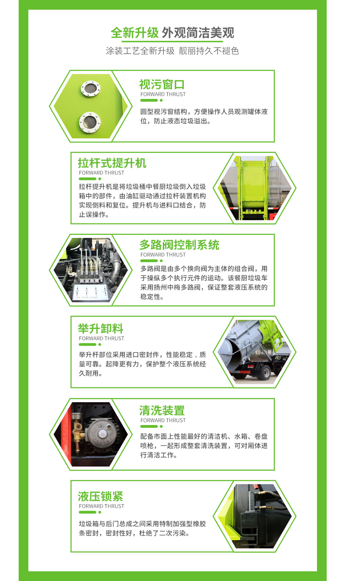 垃圾箱與后門總成之間采用特制加強(qiáng)型橡膠條密封,密封性好,杜絕了二次污染.