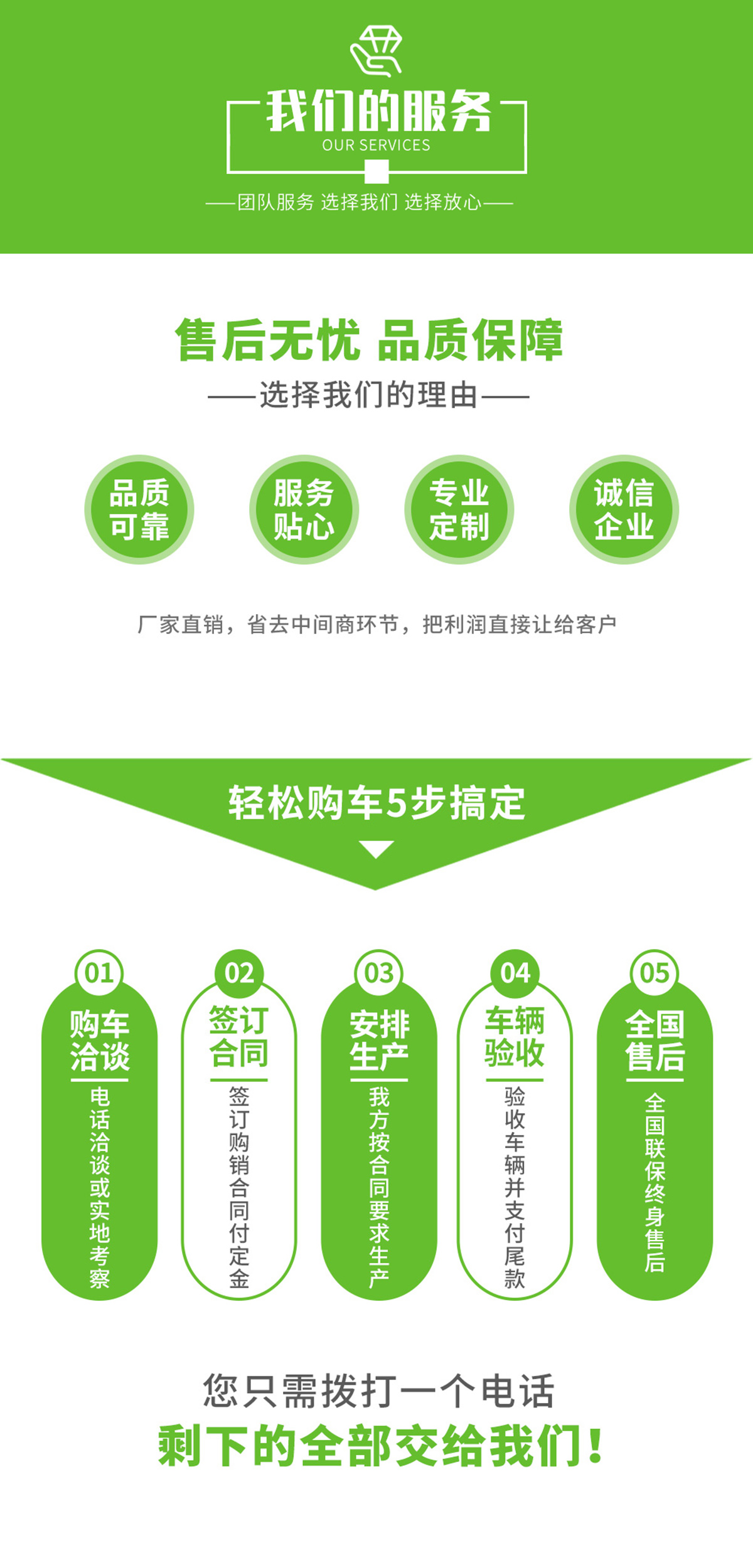 感謝您使用我公司生產(chǎn)的“神綠牌”各型專用汽車,為了更好的提供優(yōu)質(zhì)的售后服務(wù),我公司現(xiàn)鄭重向您作出如下承諾:
